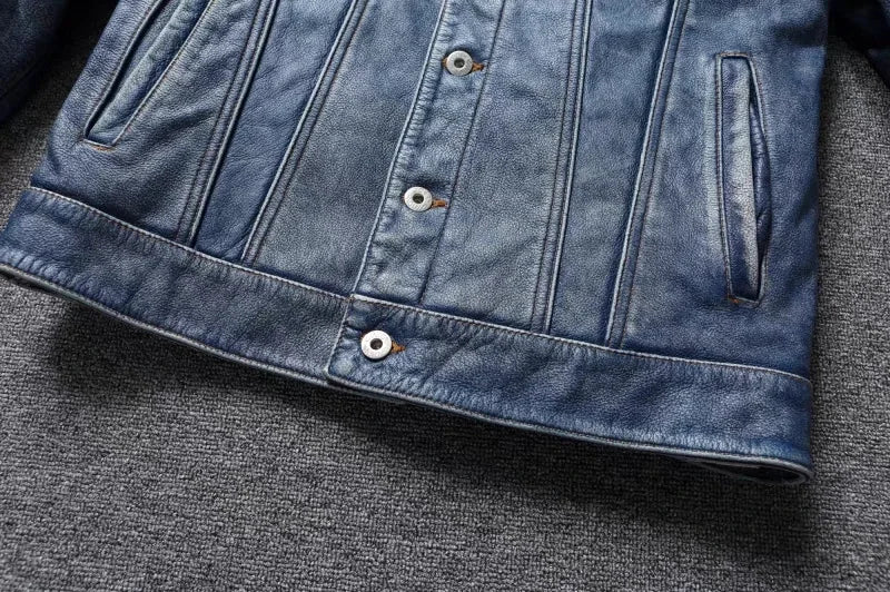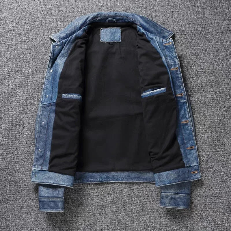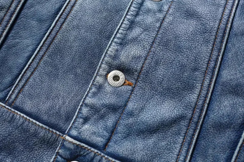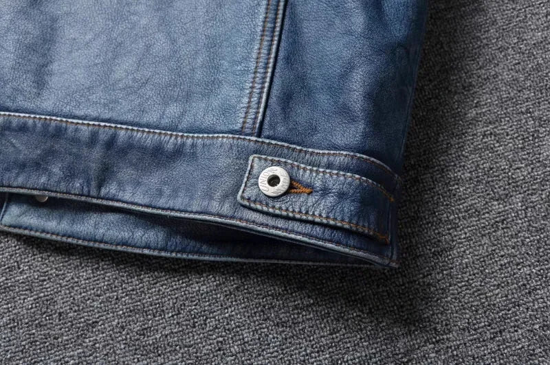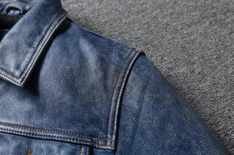 The Model 50777BB is a masterclass in rugged, timeless menswear. This isn't a flimsy "fashion" jacket; it is crafted from Genuine Cow Leather, offering the weight and durability that only real hide can provide. Its Single-Breasted design and Turn-Down Collar lean into the classic "Trucker" or "Workshirt" aesthetic, making it an essential "Four Seasons" layer that looks as good over a t-shirt as it does over a hoodie.