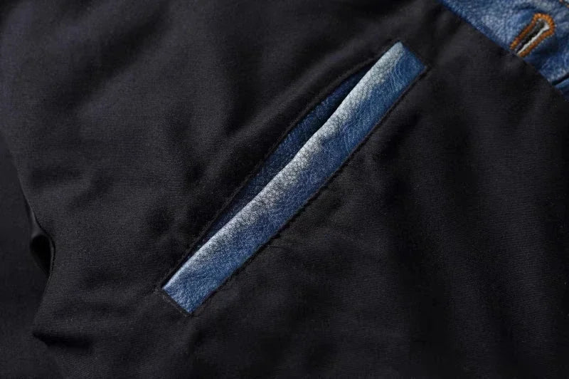 • Functional Pocket Design: Equipped with reinforced chest pockets and side pockets, providing secure storage for your essentials like your phone, wallet, or keys while adding to the jacket's rugged, utilitarian charm.