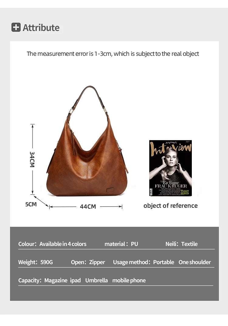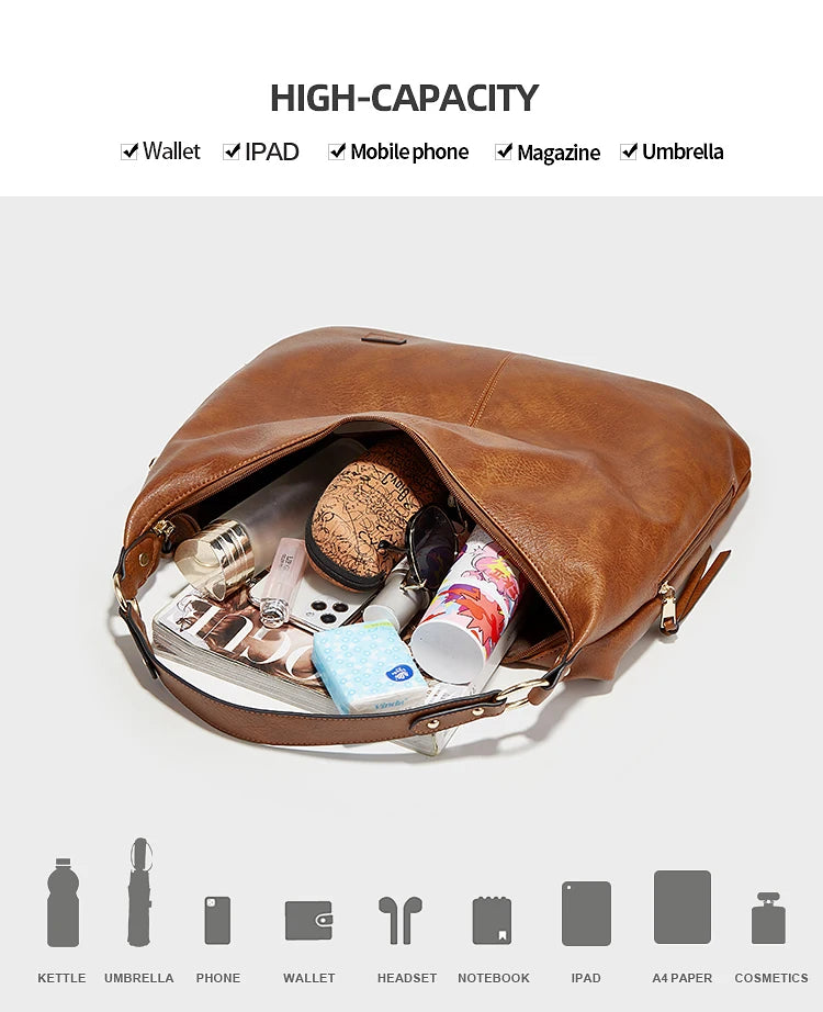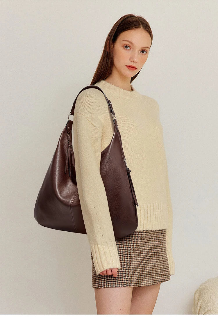• Masterful Large-Scale Capacity: At 44cm (W) x 34cm (H), this oversized Hobo is designed for the woman who carries it all. It easily accommodates tablets, planners, a light cardigan, and daily essentials while maintaining its elegant, slouchy silhouette.
