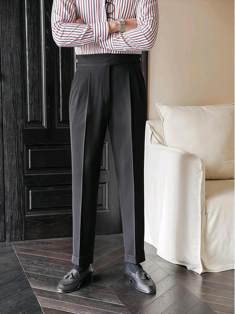Mogghal | Moneglia Ribbed Straight Fit Pleated Trousers